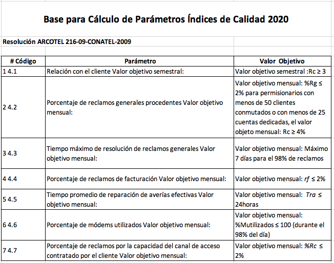 Resolución Arcotel Índices de Calidad: 216-09-CONATEL-2009